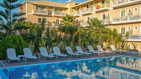 Hotellet ligger i rolige omgivelser i Akrotiri med ca. 3 km til Tsilivi hvor der findes et stort udvalg af restauranter, barer og småbutikker. Den nærmest sandstrand ligger ca. 2 km. fra hotellet.