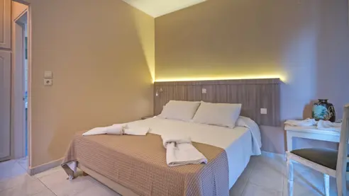 Zakynthos Hotel tilbyder dobbeltværelser alle med bad/toilet, hårtørrer, TV, køleskab, aircondition, safetyboks (mod gebyr), Wi-Fi og balkon eller terrasse. Det er muligt at bestille værelse med skrå havudsigt.
